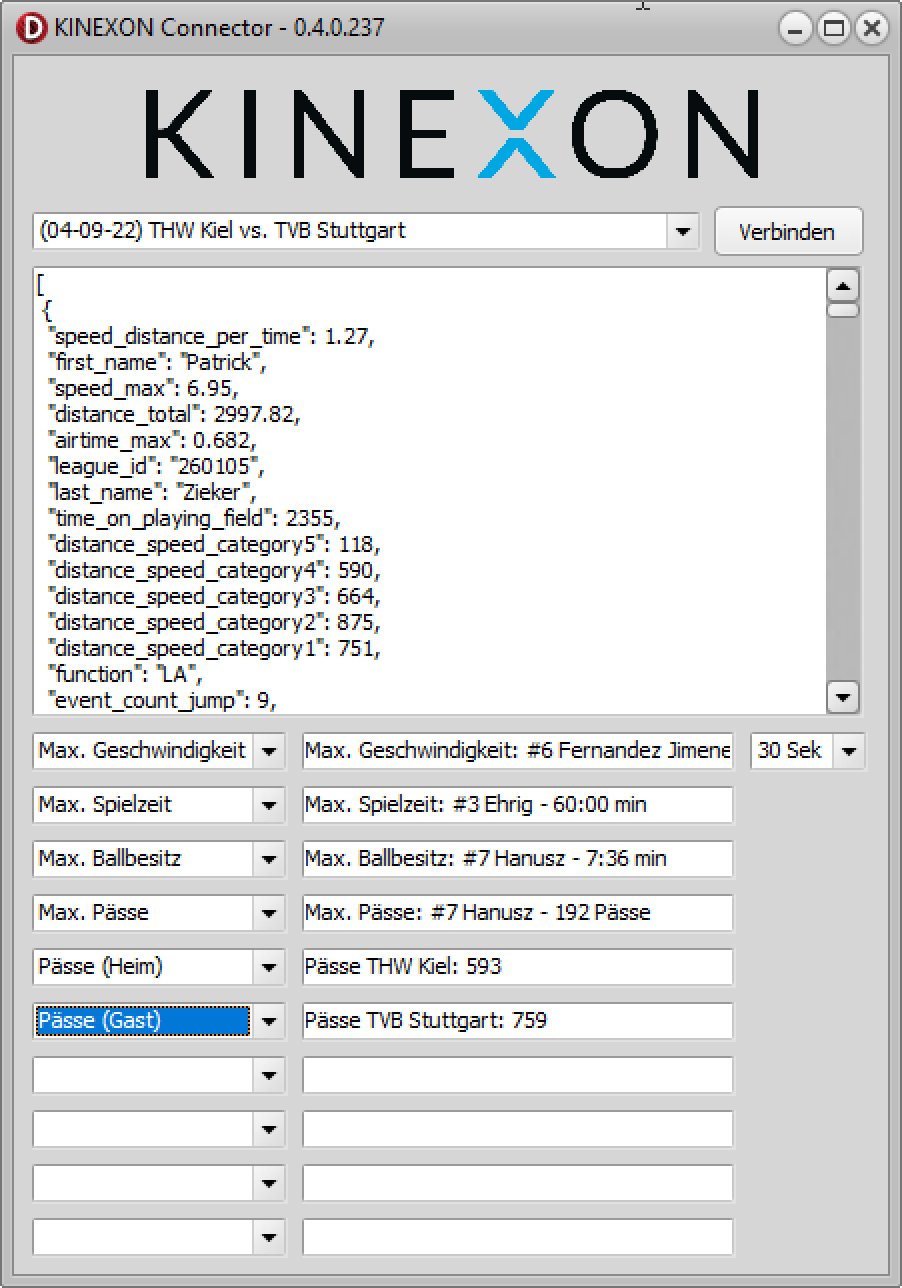 Die Daten für die LiveText Schnittstelle können aus verschiedenen Quellen kommen. Unter anderem wurde bereits eine Schnittstelle zu Kinexon realisert. Kinexon sammelt über Tracker verschiedenste statistische Daten z.B. in der Handball-Bundesliga.